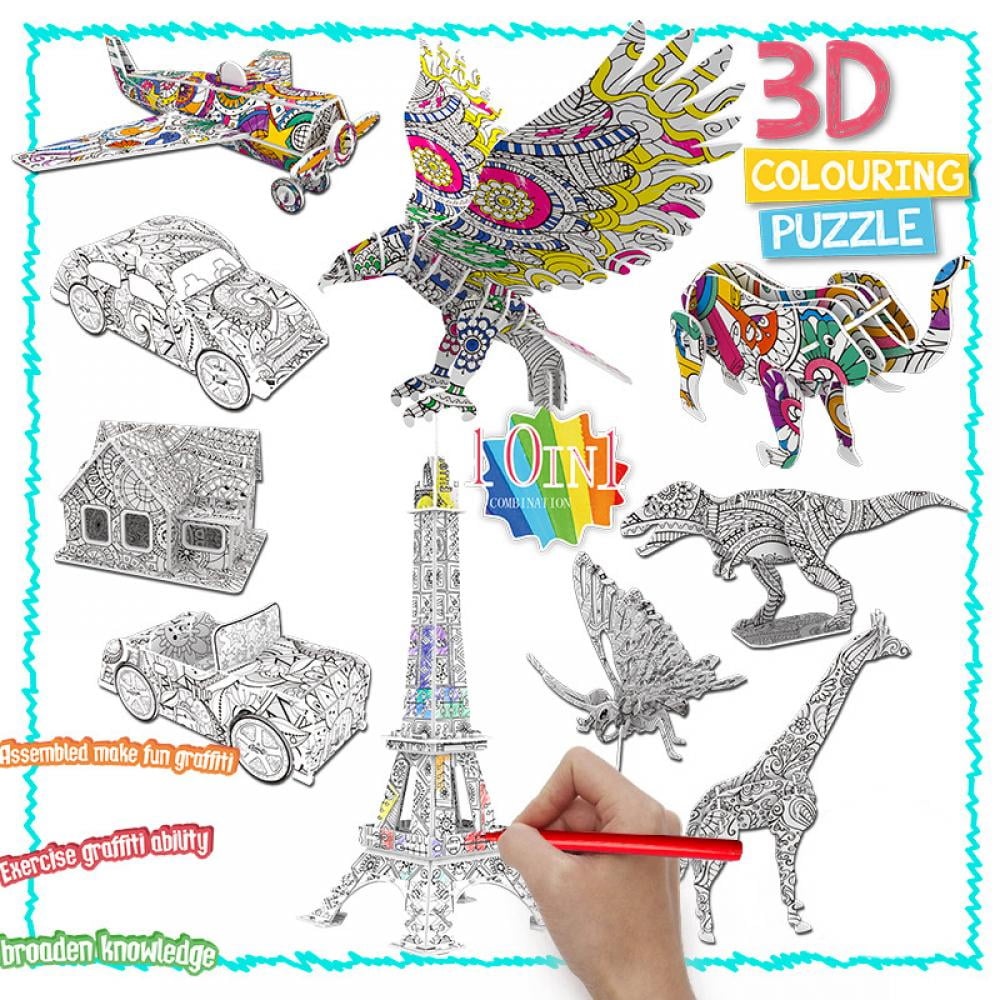 Buy 3D Puzzle for Kids Colouring 3D Jigsaw Puzzle Gift Set with 6