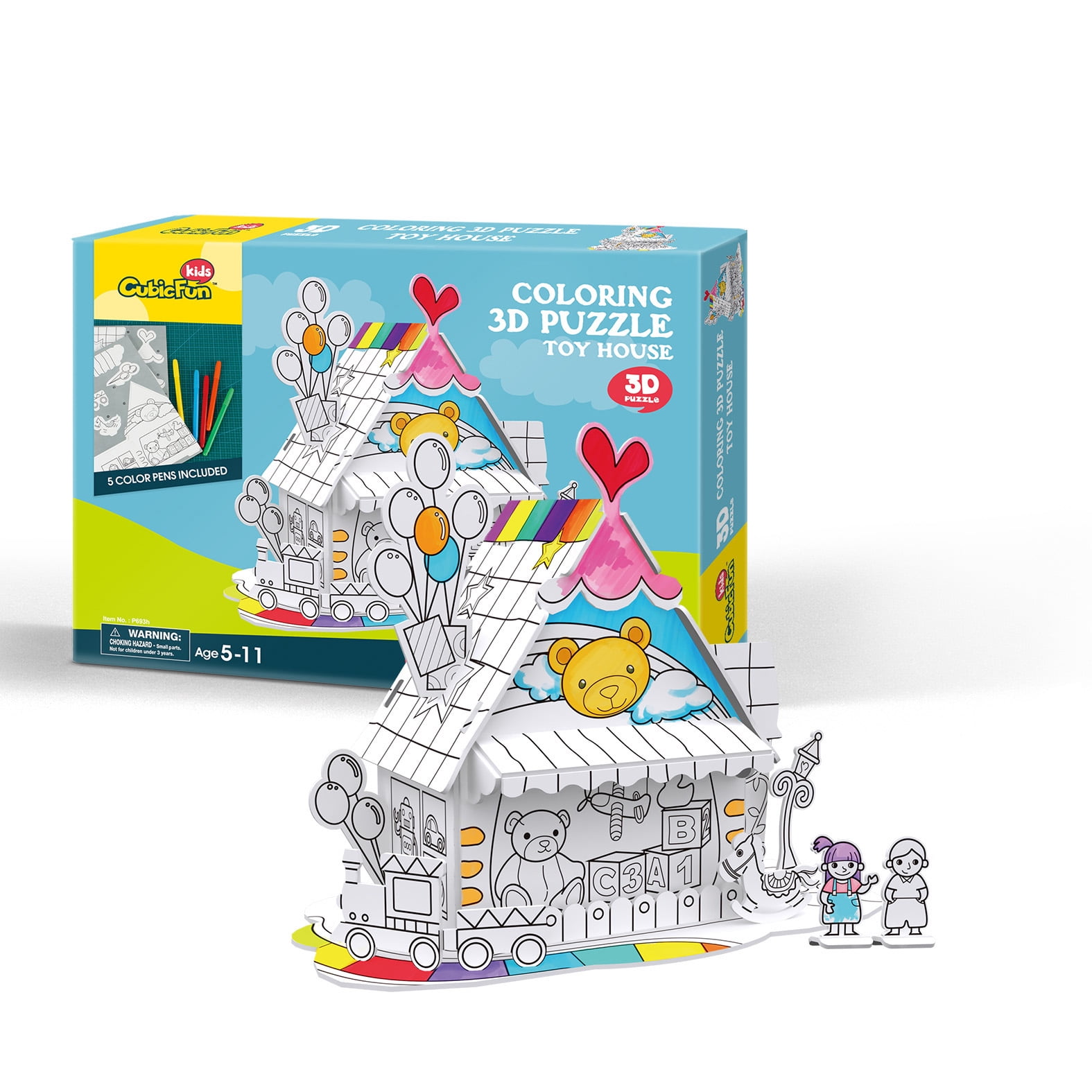 3D COLORING PUZZLE TOY HOUSE 18 PIECES PLUS 5 COLOR PENS