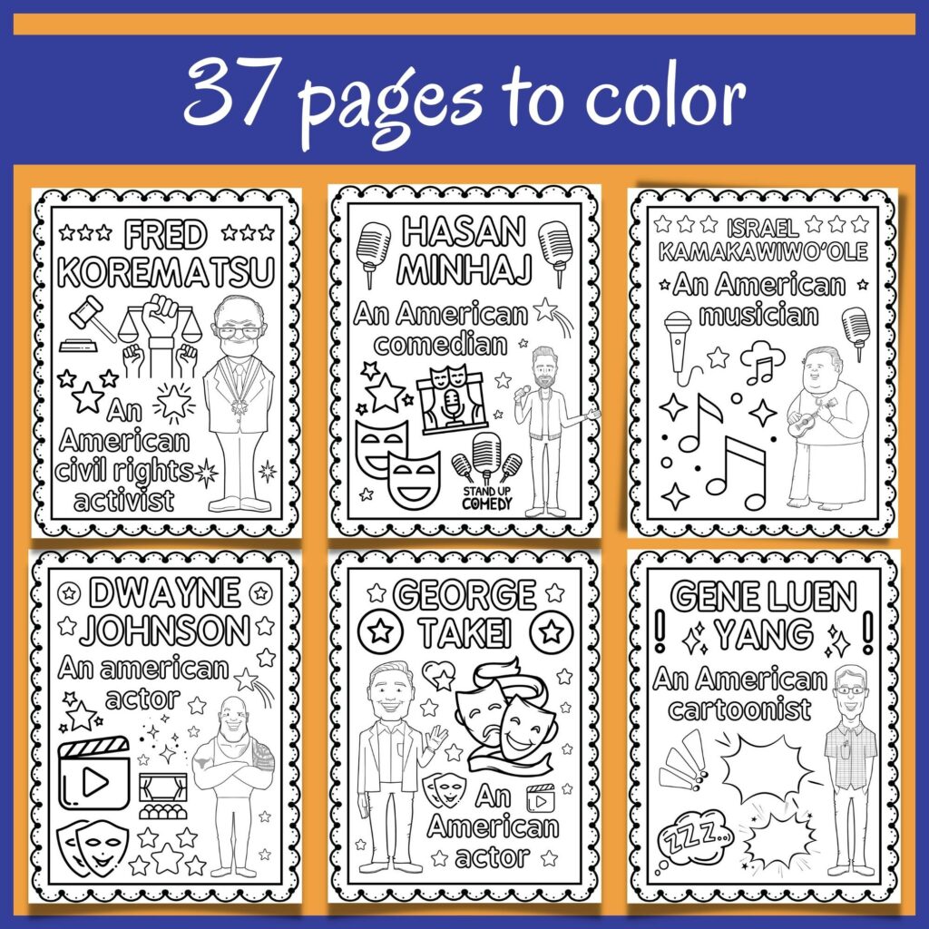 AAPI Heritage Month Coloring Pages Activities Famous AAPI Coloring