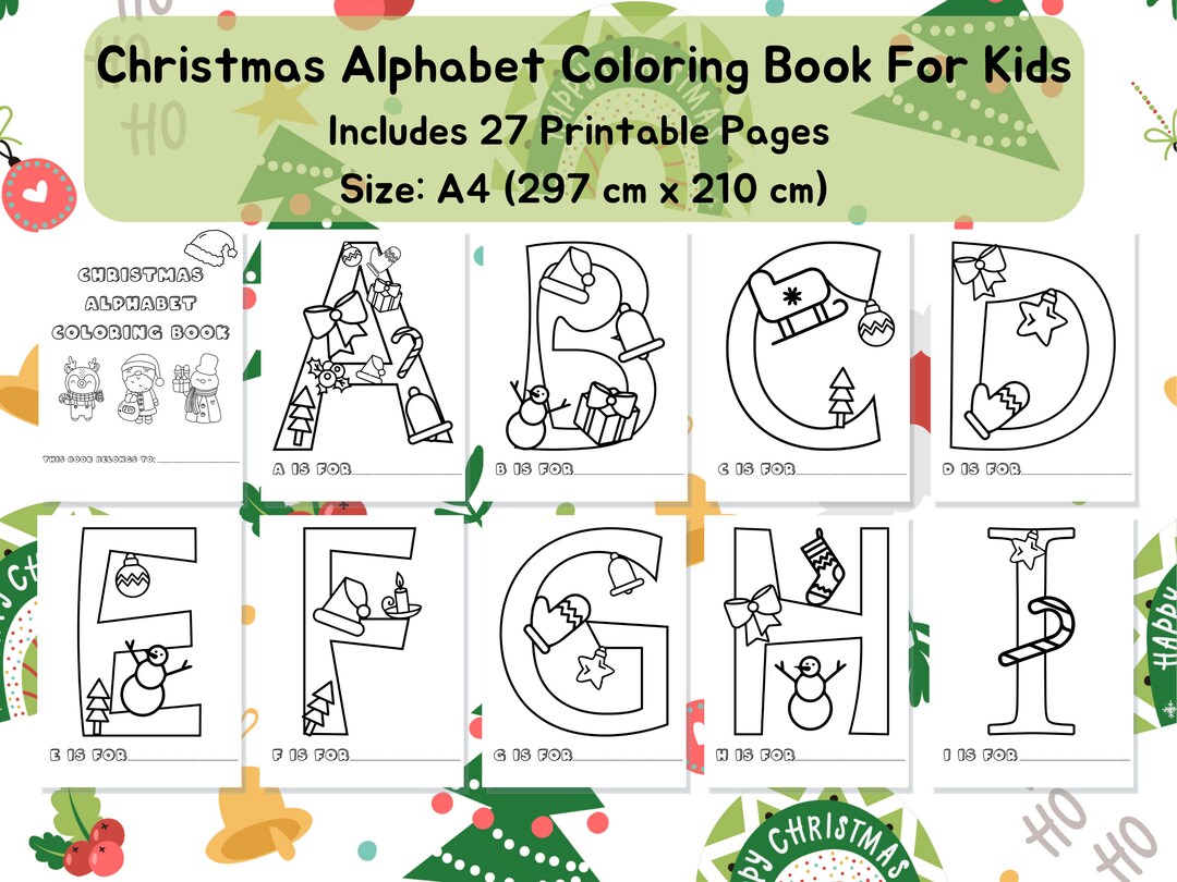 Christmas Alphabet Coloring Pages Christmas Printable Etsy