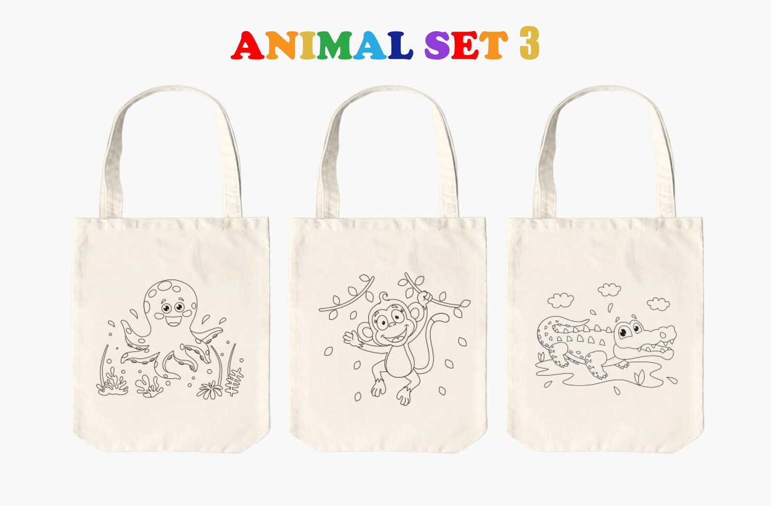 Set of 3 Canvas Coloring Tote Bags for Kids Washable Etsy