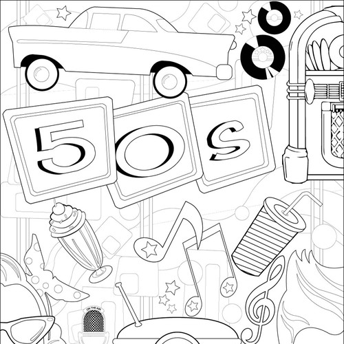Coloring book for adults Color the decades 50's2000 Illustration or