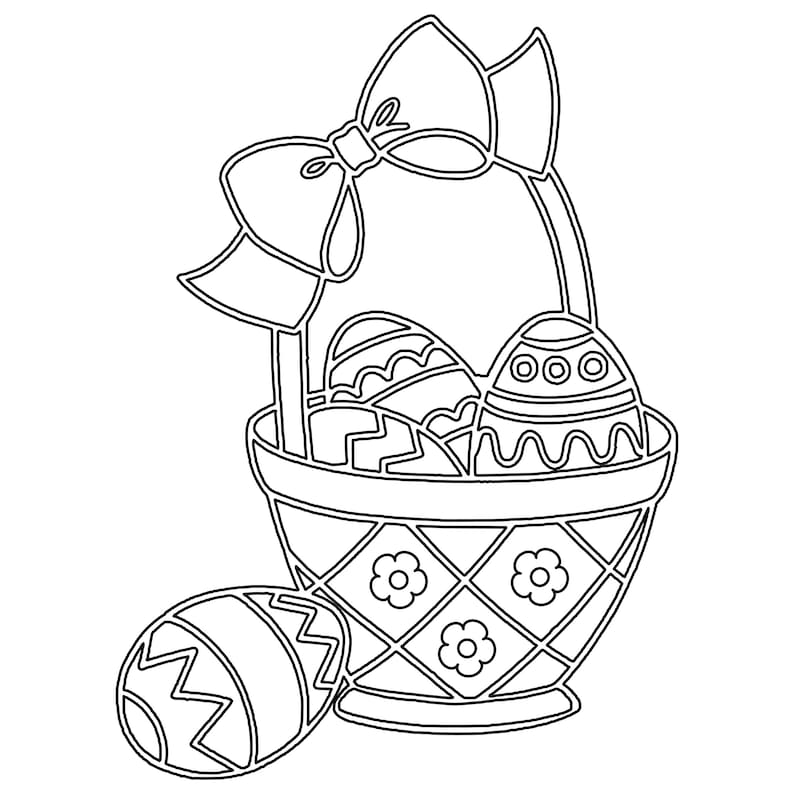 Easter Basket with Easter Eggs Coloring Page (Easter)