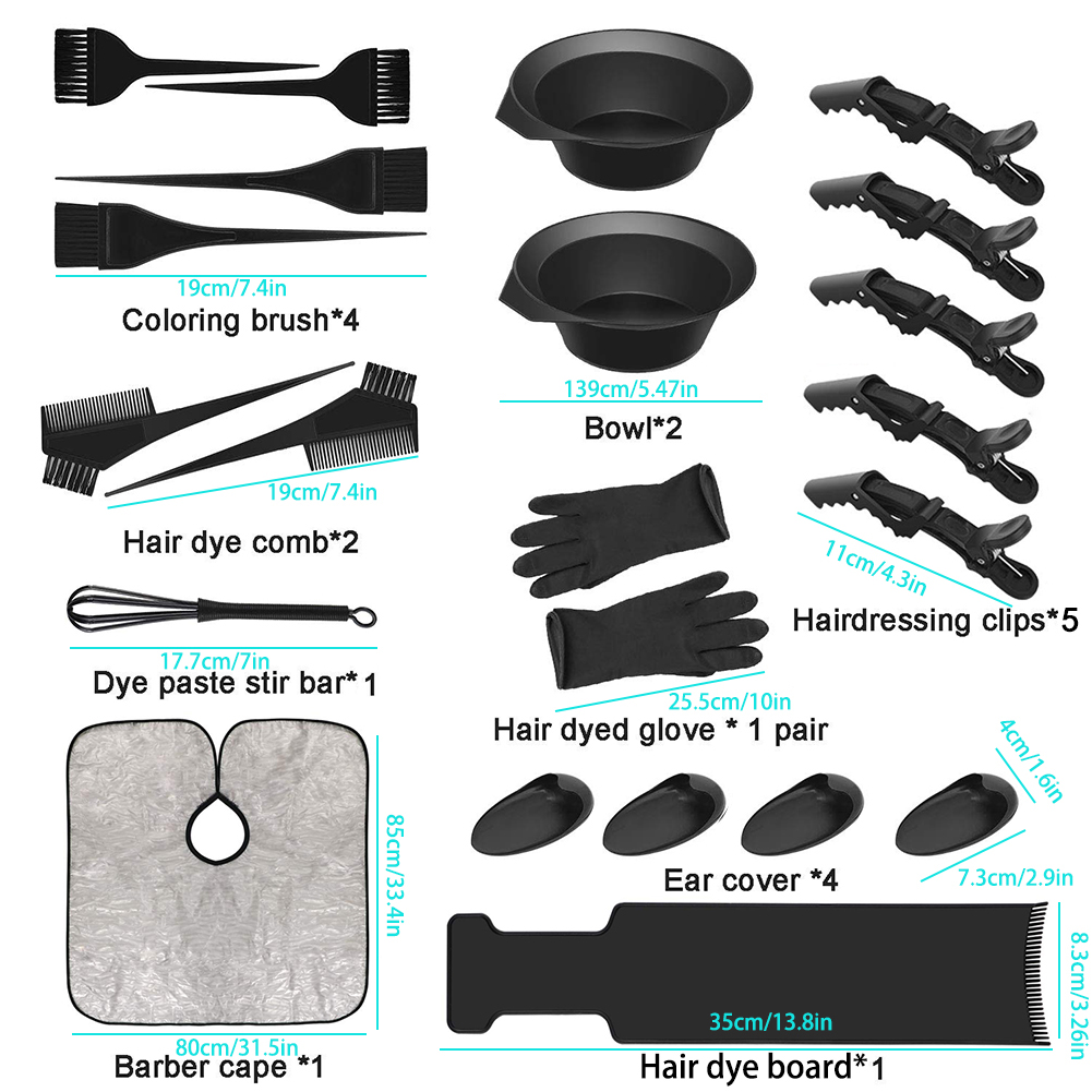 22Pcs Hair Dye Coloring Kit Hair Tinting Bowl Dye Brush Ear Cover