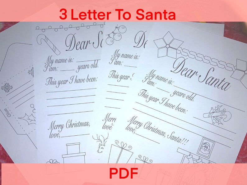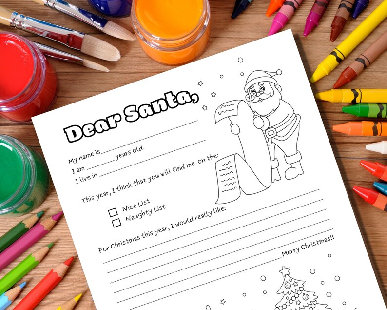 Letter to Santa Coloring Page Printable Dear Santa Letter Etsy