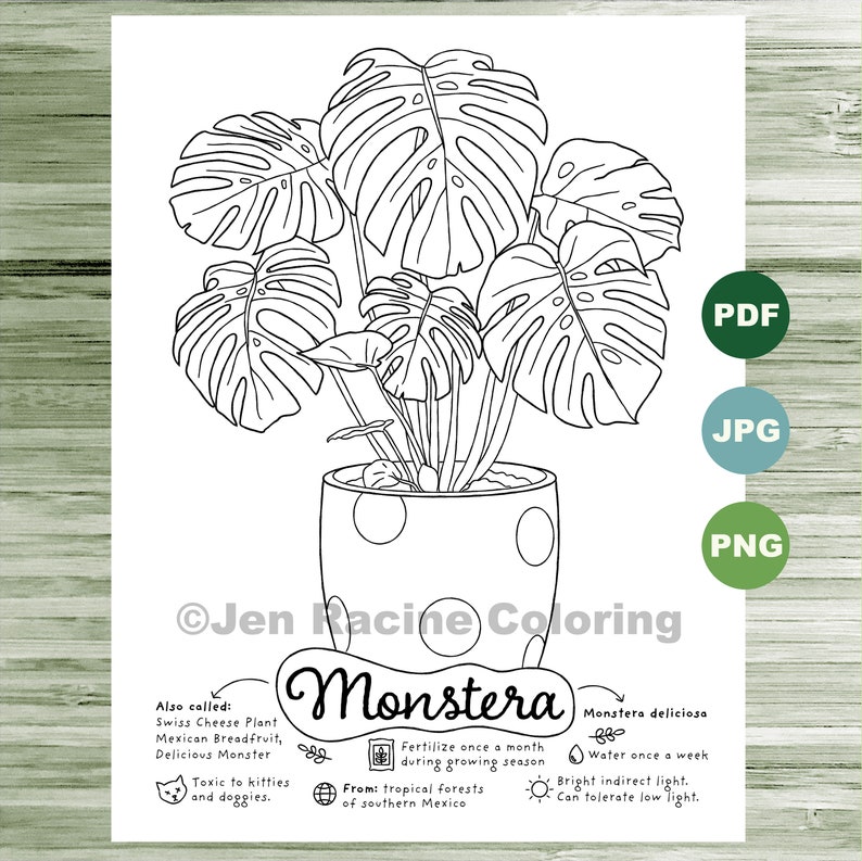 Monstera Coloring Page Plants Indoor Plant Houseplant Art Etsy
