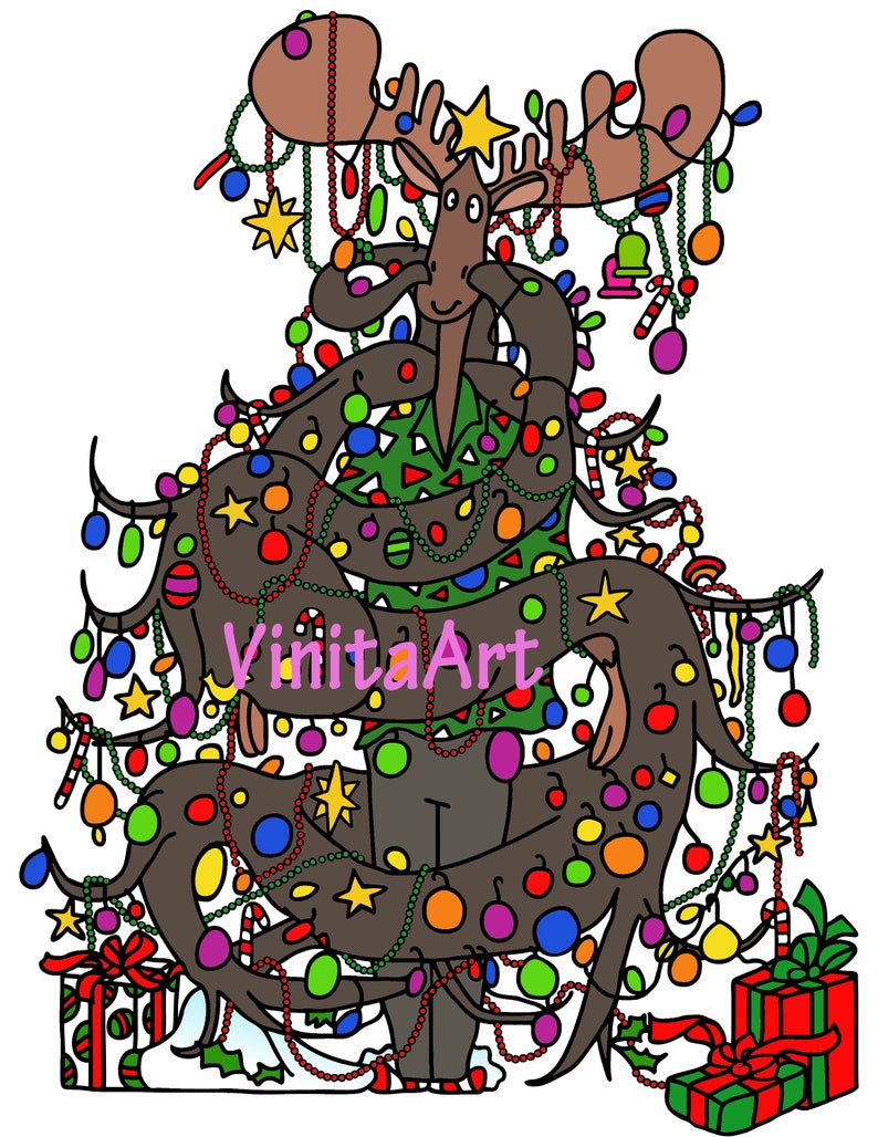 Mooseltoe Storybook Clipart Christmas Printables Coloring Etsy