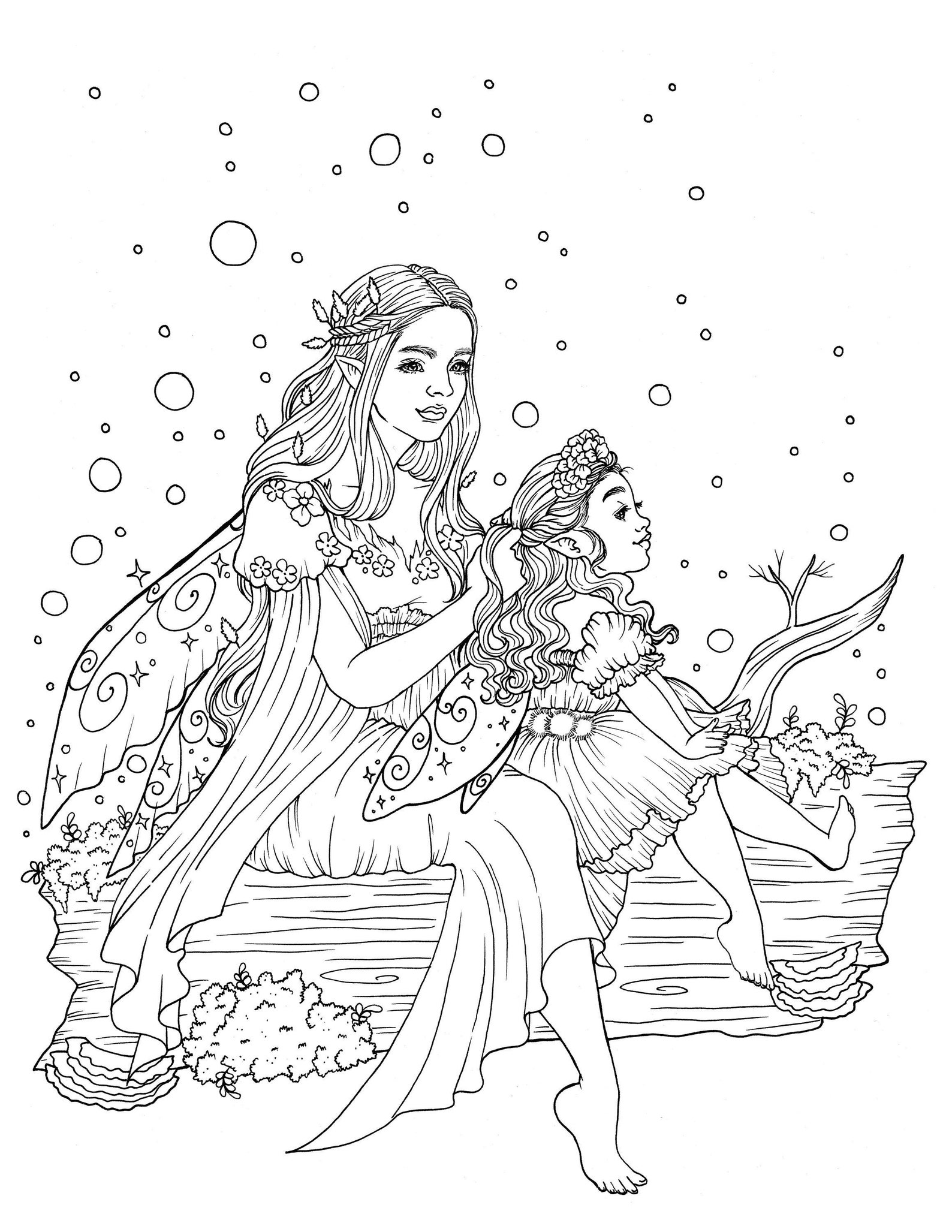 Fairy mother and daughter colouring page for instant download Etsy