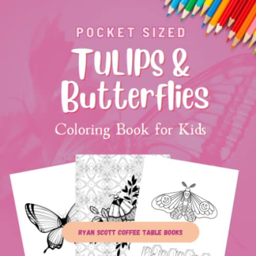 Mini Coloring Book for Kids Tulips & Butterflies Small, Pocket Size