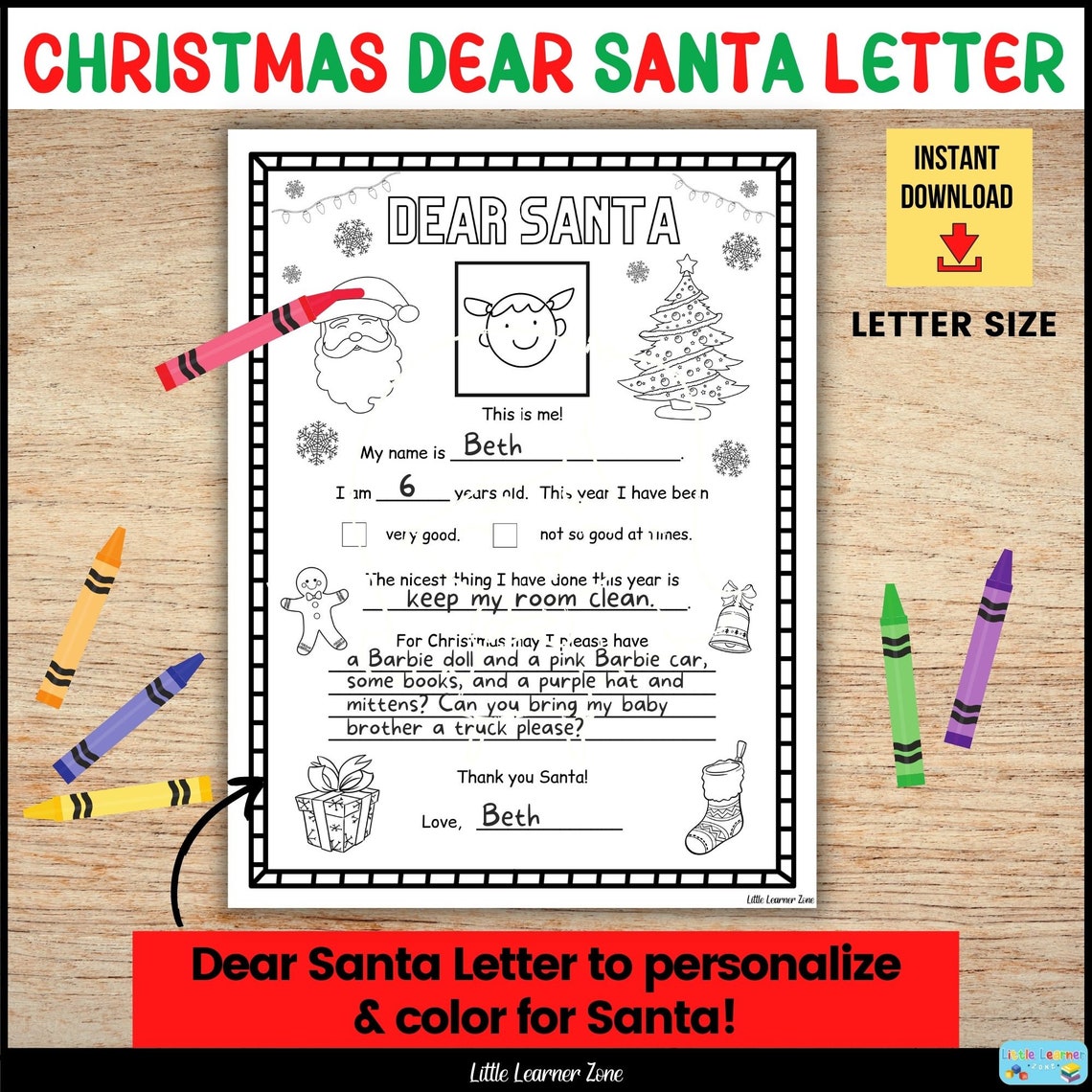 Letter to Santa Coloring Page Printable Dear Santa Letter Etsy Ireland